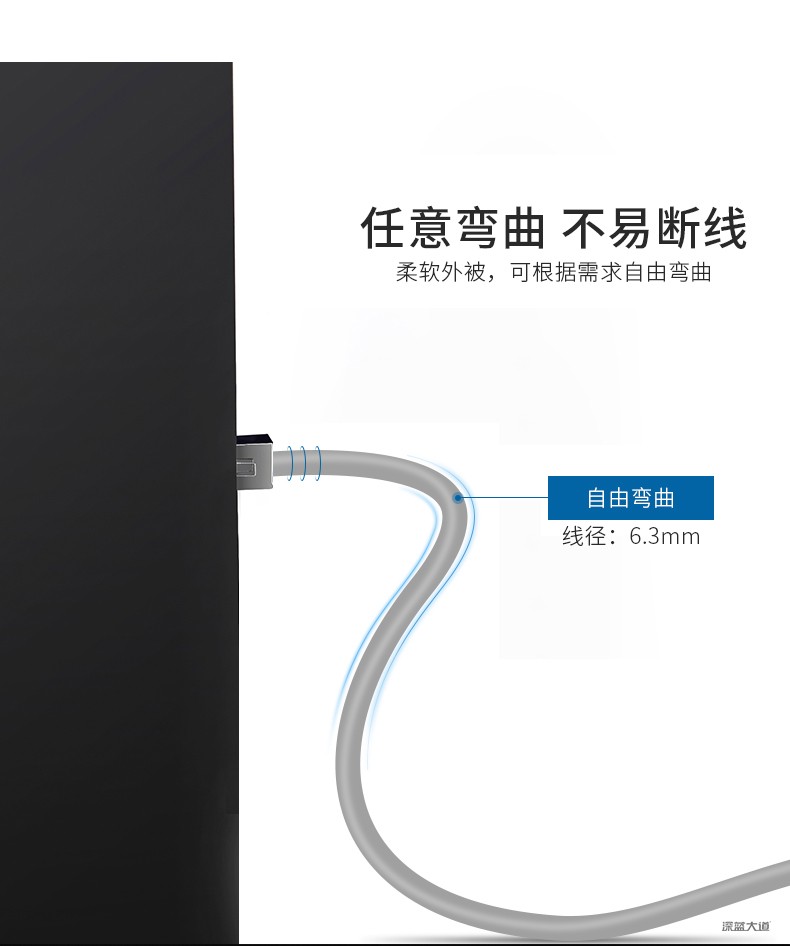 1. 8根足0.56mm无氧铜导体,信号传输快 、使用寿命长