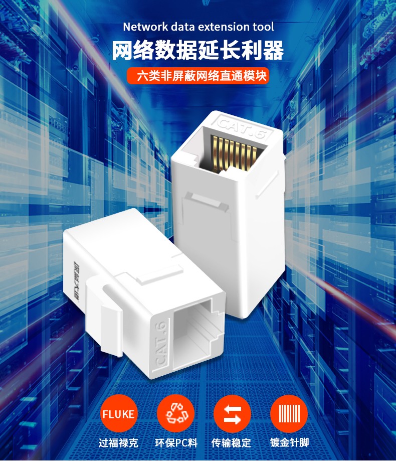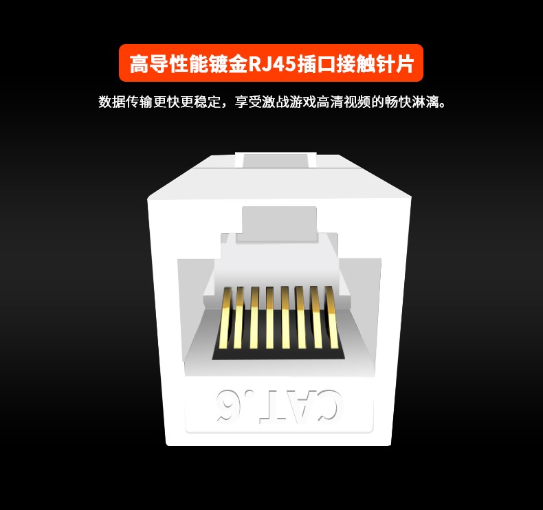 高强度磷青铜/镀金端子/即插即用/过福禄克测试,提供稳定的千兆网络数据传输,网线随意延长